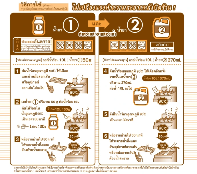 - น้ำยาขจัดคราบสกปรกจากสารอินทรีย์ ทำความสะอาดอุปกรณ์ลวกเส้น